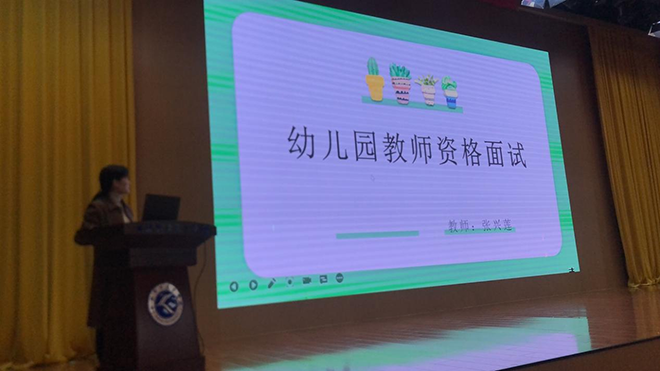 讲座围绕学生们比较的关心的“考什么、如何考、怎样准备”话题展开,详细介绍了面试的考评标准、面试的形式与内容、面试的流程与注意事项。她重点从职业理念、思维品质、心理素质和面试技巧等方面进行了具体的阐述。张老师理论联系实际,选取典型的案例,向学生们展示了面试的具体流程,解开了学生们心中的诸多疑虑。她还鼓励学生们从容应对面试,并祝愿所有的学生顺利通过本次的资格证面试考试,早日成为一名优秀的幼儿老师。