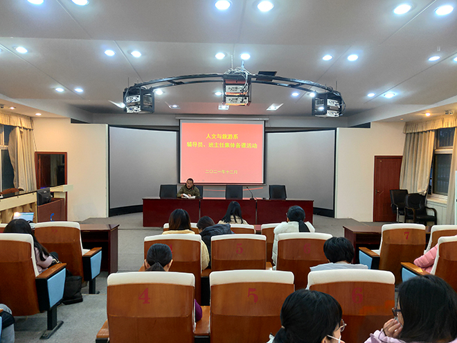 12月23日下午,围绕学生期末诚信教育、假期安全教育主题,人文与旅游系组织了辅导员班主任集体备课活动,系党总支副书记陈玉香,学工科科长张伟、全体辅导员和班主任参加活动。