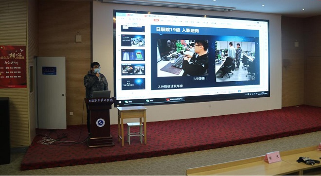 报告会上,同羲科技人力资源部经理张东向同学们介绍了行业设计师的发展通道、企业专业设计工具CATIA软件的应用领域,并重点讲解了职业院校学生如何进入设计专业,同时对实习生的职业成长进行具体的描述和规划。随后已入职该公司的2018级飞行器数字化制造技术专业优秀学生徐根元同学根据自身的成长经历和心路历程向师弟师妹们传授了自己的宝贵经验,起到了良好的示范效应。最后,毛晓峰以自身18年制造行业人才发展与规划咨询经验,参与上汽大众、上汽乘用车、蔚来汽车、理想汽车、威马汽车等车企人才规划战略咨询的丰富阅历,为大家分享“大学生如何要做汽车行业的螺丝钉”专题报告,围绕“汽车设计行业发展趋势及职业成长规划”,对当下汽车行业的发展趋势及对制造行业设计类人才需求进行具体分析。