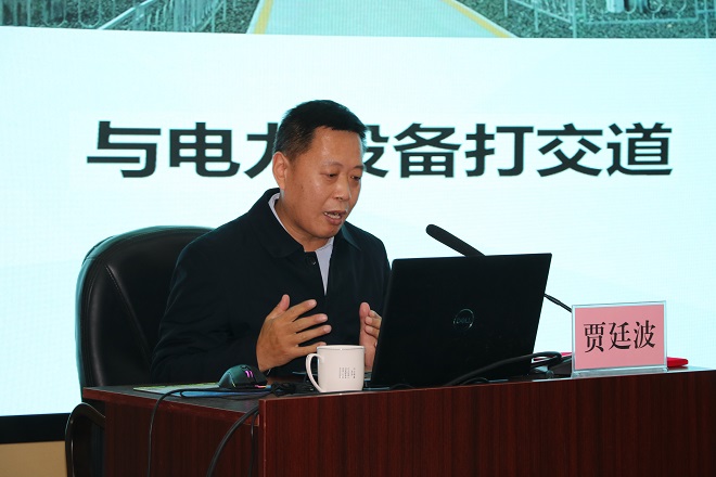 报告伊始,贾廷波首先向现场观众作了简要的自我介绍。随之,贾廷波通过播放“合闸操作”、“分闸操作”和“高空作业”三段视频展示了自己的日常工作。接下来,他从态度、能力、毅力与追求四个方面为大家带来了一场“路走对了,就不怕遥远”的主题报告。从1997年参加工作至今,24年的工作里,贾廷波始终坚持多走一步、多看一眼、多学一点的工作态度,让他由一张白纸变成了“活图纸”,由普通战士成为了“冲锋员”。发现问题是成果,解决问题是能力,贾廷波建议大家在日常工作生活中要坚持以问题为导向,培养发现问题与解决问题的能力;同时也要不断学习、总结、归纳、整理,才能干好本职工作,不负心中追求。