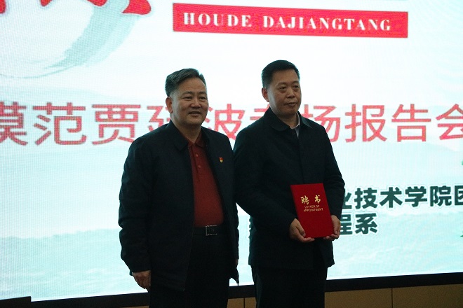 质量之魂,存于匠心。“为什么8000万人口的德国能诞生2300个世界品牌?”贾廷波以问题讨论的形式带领现场观众解读了匠意,走近了匠人。大力弘扬劳模精神、劳动精神、工匠精神是习近平总书记对广大人民群众的倡导。贾廷波从成为工匠的六个基本要义和六项行为转变出发,结合米其林星级餐厅与寿司之神的案例,让现场观众领略了敬业、精益、专注、创新的工匠精神。语言质朴淳厚,道理深邃实用,贾廷波的专题报告让现场观众深刻认识了弘扬劳模精神和工匠精神的重要意义,也启发现场观众积极从工匠身上汲取成才、奋斗、报国的精神力量,努力做劳模精神和工匠精神的践行者。最后,建筑工程系全体师生对贾廷波作出的精彩报告表示真诚感谢,由团委副处长宋伟为贾廷波颁发了日照职业技术学院创新创业教育专家库专家聘书。