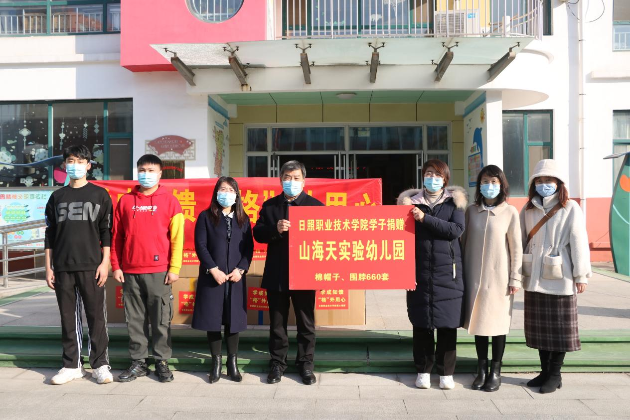 12月23日上午,爱心捐赠一行继续来到日照市金海岸小学幼儿园,捐赠棉帽60套、围脖520套,到观海社区幼儿园,捐赠棉帽、围脖套装86套。观海社区幼儿园的孩子主要来自外来务工人员家庭、困难家庭、离异家庭和单亲家庭。这笔捐赠犹如雪中送炭,让孩子们感受到了社会大家庭的温暖,在此也呼吁社会对特殊群体给予更多关注与爱护。接下来前往日照经济技术开发区园林环卫有限公司,向寒风凛冽中坚守岗位、忙碌在城市各个角落的城市美容师环卫工人捐赠棉帽、围脖、手套770套,向他们表达敬意与感谢。