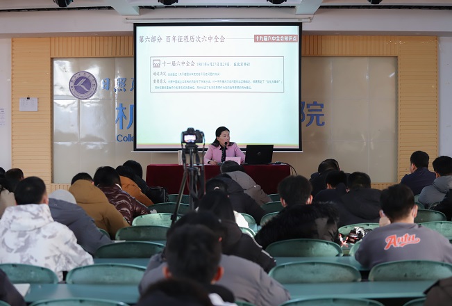 熊文生从“党的十九届六中全会召开的背景和意义”、“为何要总结党的百年奋斗的重大成就和历史经验”、“《中共中央关于党的百年奋斗重大成就和历史经验的决议》特点”、“ 中国共产党百年奋斗的历史意义及宝贵经验”和“百年征程历次六中全会”五个方面进行了阐述。讲课过程中,熊文生阐述理论,联系实际,要求全体师生将学习十九届六中全会精神作为当前首要政治任务,要立足本职岗位,把学习转化成工作动力,扎实做好当前各项工作。