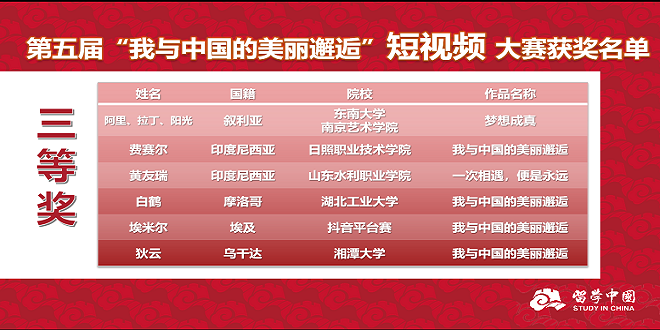 12月21日,我校国际教育系组织在校留学生参加了第五届《我与中国的美丽邂逅》来华留学生征文暨短视频大赛线上颁奖典礼。在本次大赛中,我校印度尼西亚留学生费赛尔和林朗天凭借出色表现,分获短视频组三等奖和优秀奖,我校荣获优秀组织奖。