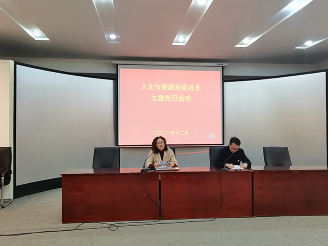 为了进一步增强党员教师党性修养,坚定理想信念,12月17日下午,人文与旅游系党总支在和润楼一楼报告厅开展了“学党章 强党性 悟初心 践行动”主题党日活动。活动由系党总支组织纪检委员秦志玉主持,全体党员教师参加活动。