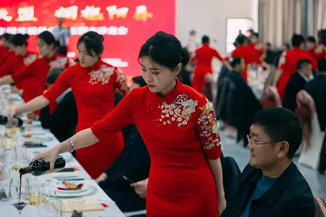 此次宴会活动具有宴会规格高、服务要求高的特点,整套菜单包含10道菜品,6款酒水,所有菜品均采用分餐制。宴会从11点40开始,持续到14点结束。整个宴会活动中,33名服务志愿者以其整齐划一的队列、训练有素的动作、严谨细致的工作标准和精湛高超的服务技能,展现了酒店管理与数字化运营专业师生良好的职业风貌和专业技能,获得了与会嘉宾的一致好评。