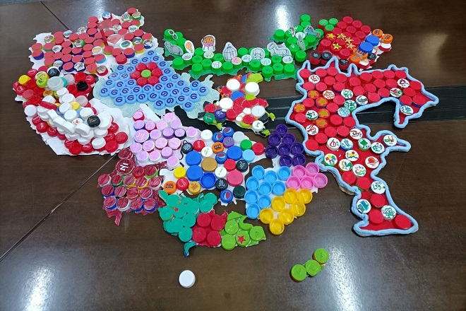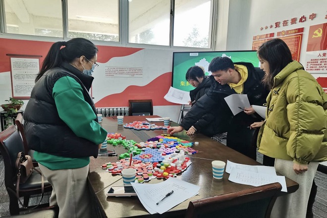 地球是我们共同的家园,祖国是我们永远的港湾。本次大赛将“中国地图”样式底图分为大小相近的十一部分,各系部采取抽签方式随机抽取负责部分,抽取以后利用自行收集的废弃瓶盖在底图上进行创作性粘贴制作。一周以后,承办单位完成作品收录,并拼合成完整的中国地图进行展出。各系部联想地理知识,联系地域特点,充分发挥想象力,不仅按时完成了比赛作品,而且将特色标志与绘画图案巧妙融入,丰富了作品效果,也展现了同学们对不同地域文化的独到见解。比赛采取线上投票与线下打分的方式进行评选,从契合度、美观度、牢固性、作品介绍、综合效果五个方面进行综合考评,最终建筑工程系获一等奖;现代汽车系与会计系获二等奖;电子信息工程系、商学系、人文与旅游系获三等奖;其余参赛系部获优秀奖。