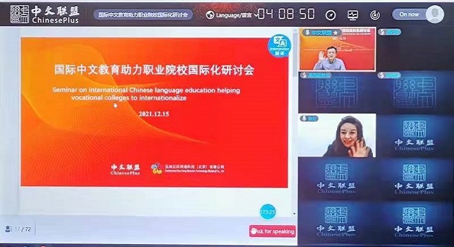 12月15日,国际教育系代表学校参加了由中外语言交流合作中心、中文联盟举办的国际中文助力职业院校国际化研讨会,系主任杨静作题为“校、行、企三方协同助力‘中文+职业技能’教育海外推广”发言,从开展“中文+职业技能”教育、携手企业“走出去”、参与“中非职教合作项目”、携手行业协会服务国际产能合作等四个方面,分享了我校推广“中文+职业技能”教育的经验做法。