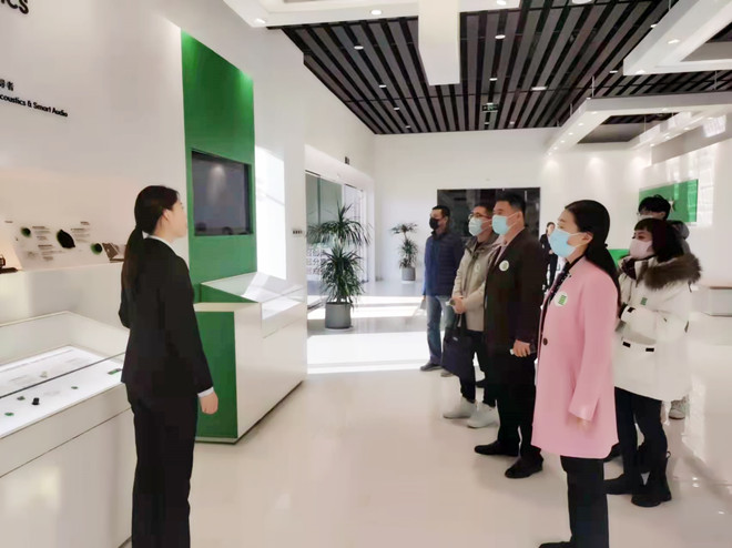 熊文生一行首先对公司声学产品展示区、体验区进行了参观和体验,了解了公司发展历程、取得成就以及部分产品功能和特性相关介绍,并对公司模具加工制作车间、员工生活区、歌尔匠造培训中心进行了实地参观考察。重点参观了歌尔匠造中心的理实一体化教室,深入了解了歌尔匠造专班的人才培养模式以及就业方向,并与歌尔工学院相关负责人进行了座谈交流,校企双方就歌尔匠造专班培养方案设计、学生学习、专班筹建及专业培训基地建设等工作进行了详细的商讨与交流,并对后续深化产教融合校企一体化合作事宜初步达成了共识。