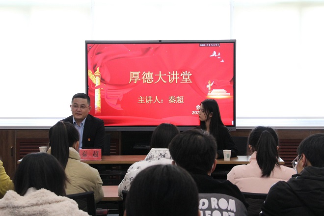 11月30日下午,由日照职业技术学院团委主办、会计系承办的“厚德大讲堂”活动在海润楼N417党员活动室顺利举行。日照社会管理学院党委副书记、执行院长、山东省高层次人才秦超应邀做访谈嘉宾。
