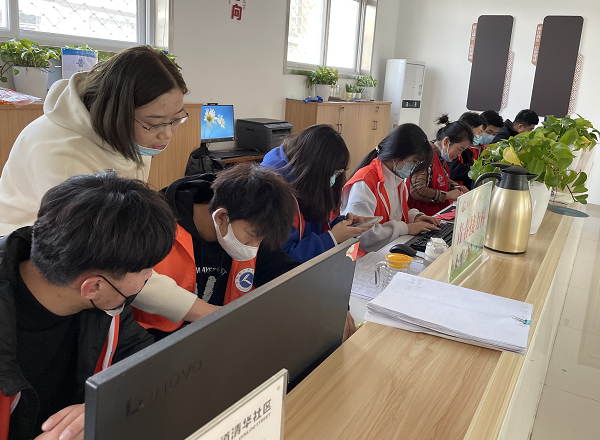 下午两点,同学们在指定地点集合后,在队长的带领下步行前往清华社区。到达社区后,志愿者先是两人一组根据自己的工作分配,来到不同的岗位,然后社区工作人员讲解、指导信息录入流程,同学们深入了解自己岗位的具体职责,他们相互配合,以认真负责的饱满精神状态在相关区域内开展工作。在社区综合服务大厅,志愿者们掌握了工作要领后,认真细致的帮助工作人员开展全国人口普查信息录入。信息录入完成后,志愿者们又主动承接了核实社区居民第三针新冠疫苗接种情况的电话通知任务,挨个拨打电话,核实名单中居民是否已经接种,未接种的告知接种时间地点。一下午的志愿服务结束后,同学们们纷纷表示,工作虽然紧张,但是能用自己的努力为社区和居民提供服务,内心感到特别欣慰充实。