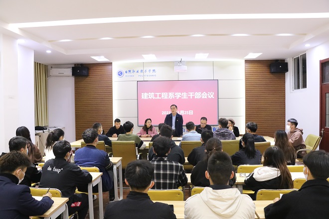 为进一步加强学生干部管理,提高学生组织自我教育、自我管理、自我服务、自我监督的能力,增强建筑工程系学生干部的凝聚力和战斗力,促进其全面发展,建筑工程系于11月25日在海润楼N203会议室召开新一届学生干部会议,会议由团总支书记毛风华主持,党总支副书记乔梓、团总支辅导员殷芳、丁文杰出席本次会议。