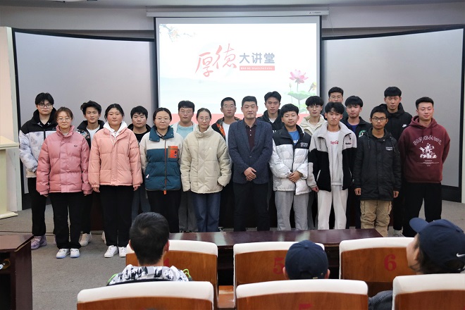 2021年11月25日晚,通用航空系在和润楼一楼报告厅举办厚德大讲堂,图书馆孙超老师为同学们讲述学院四名教师支援五莲疫情的事迹。通用航空系袁良、代艳、苑媛和2021级学生代表参加此次活动。