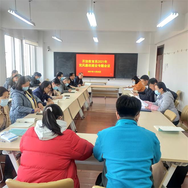 11月25日下午,开放教育系在学术交流中心A区416室组织召开党风廉政建设专题会议。会议由党总支书记安佰峰主持,全体教职工参加。
