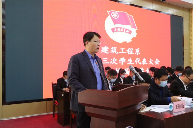 11月13日下午,建筑工程系在海润楼报告厅举行第二十三次学生代表大会暨学生会换届选举大会,建筑工程系领导班子,全体辅导员,第二十二届学生会干部成员,参加竞选人员、学生干部代表和学生代表参加大会。