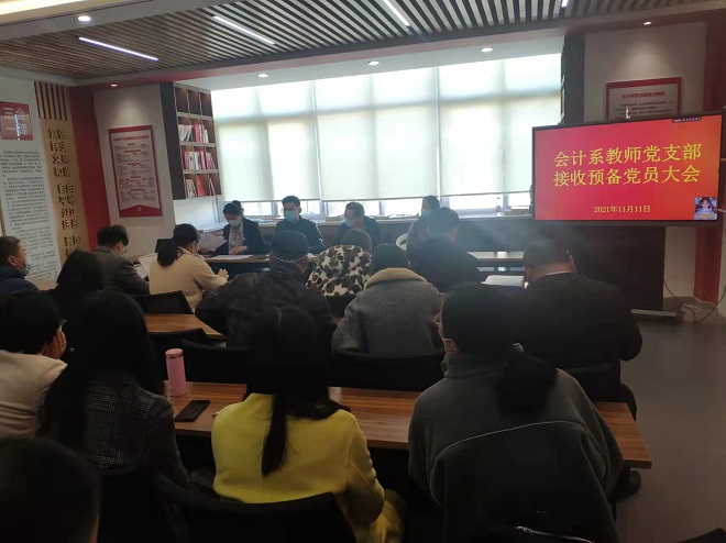11月11日下午,会计系教师党支部在海润楼N417党员活动室召开了接收2021年第二批预备党员大会,审议范昱洋、葛夫云两位教师转为预备党员相关事宜。会议由会计系教师党支部书记徐栋主持。