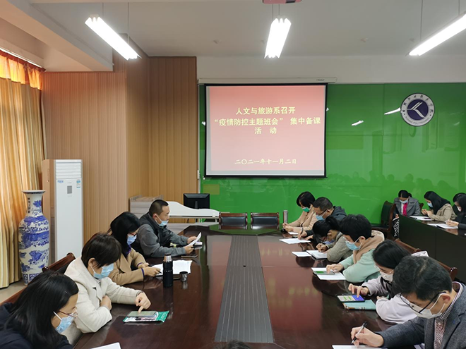 为扎实做好疫情防控工作,有效落实学校疫情防控文件精神,提升全体教师和学生的防控意识,11月2日,人文与旅游系在和润楼三楼会议室组织疫情防控集体备课和疫情防控演练,党总支副书记陈玉香、学生科科长张伟和全体辅导员、班主任参加会议。