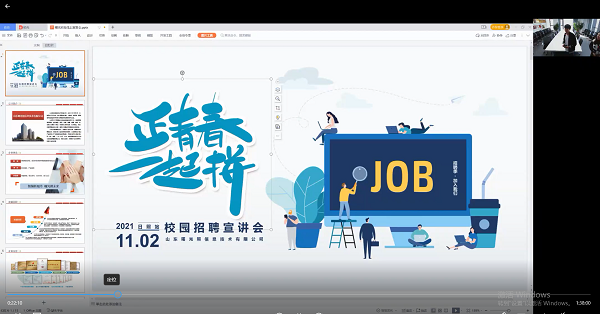 11月2日,利用腾讯会议软件,电子信息工程系举办了第一次线上招聘宣讲活动。线上宣讲活动由合作企业——北京华晟经世驻校团队耿垒老师主持,电子信息工程系2022届毕业生累计90余名学生参与线上宣讲。此次参与线上宣讲的企业共有4家,提供涵盖英文数据处理、编程类、通信类、制造业类等性质岗位90余个。