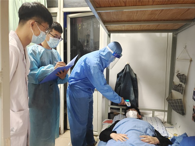 此次演练主要内容为各班级按照制定的方案模拟“学生在教室上课期间自感发热症状”和“学生在公寓自测发烧”两个突发情况的应急处置场景。场景中模拟了发现身体出现异常时的应急处置程序,实战演练学生上报信息、班主任赶赴现场应急处置、寻求校医帮助、逐级上报、引导学生配合隔离观察、现场初步判断、前往医院发热门诊等环节,切实让学生熟知掌握应急处置过程。在疫情防控演练中,着重强调演练的严肃性、真实性,各班级要做到在过程中注重抓流程、抓管理、抓细节,达到“以演促练、以练促战”效果,确保出现疫情能够第一时间响应、第一时间处置。