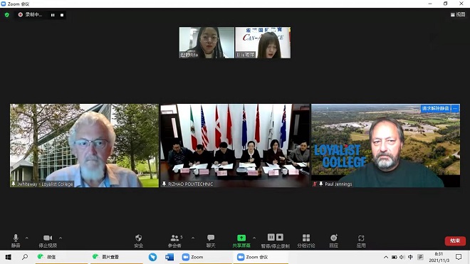11月3日上午,我校举行中加合作办学项目工作推进视频会,加拿大罗耶斯特文理学院国际部主任Jim Whiteway、建筑工程技术专业负责人Paul Jennings,我校国际教育系主任杨静、建筑工程系主任徐锡权等参加会议。