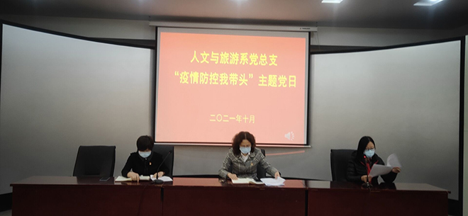 针对近期国内疫情形势以及我市疫情情况变化,为了提高全体党员教师政治站位,进一步提高全体教师的疫情防控意识,扎实做好各项工作,10月28日下午,人文与旅游系党总支在和润楼一楼会议室开展了“疫情防控我带头”主题党日活动。活动由系党总支副书记陈玉香主持,全体党员教师参加。