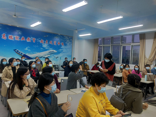 随后,为确保全体教师熟练掌握突发疫情状况的处置流程,做到有备无患,人文与旅游系严格按照疫情防控要求,组织全体教师对教室、宿舍等场所的突发状况、体温情况异常处理等场景进行了模拟演练,模拟各个环节以及突发应急事件时的工作流程。演练中,全体教师分工明确、认真对待,全程佩戴口罩,间隔一米以上,严格按照疫情防控的相关流程进行演练。对于教室内发现的“体温异常”人员,防疫人员第一时间将其带至隔离区,相关人员及时做好信息上报和现场消杀工作,全程闭环演练,达到了预期效果。李侠对演练工作进行了总结。她强调,全体师生要高度重视开学疫情防控工作,要绷紧疫情防控思想之弦,严格落实各项措施,进一步细化各项工作方案和制度要求,精心做好疫情防控各项工作。