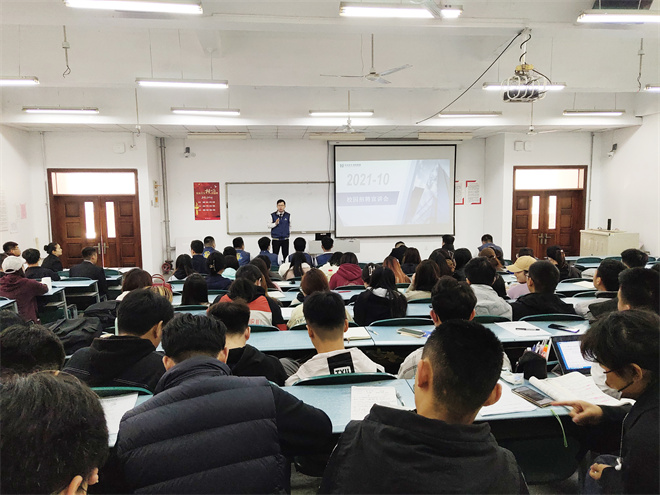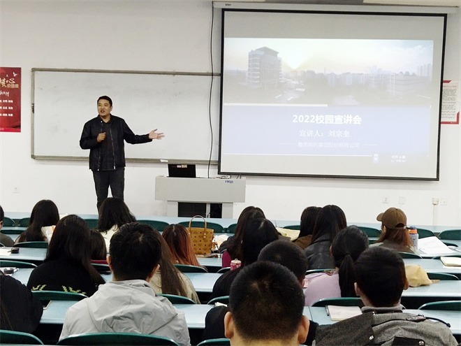招聘会现场,企业的校招负责人就公司文化背景以及公司运营现状为同学们做了详细介绍,而后针对今年用人需求做了认真的解读,向同学们详细说明了公司的招聘岗位、职业发展、薪资构成、福利津贴等,并现场和学生做了良好的互动交流。