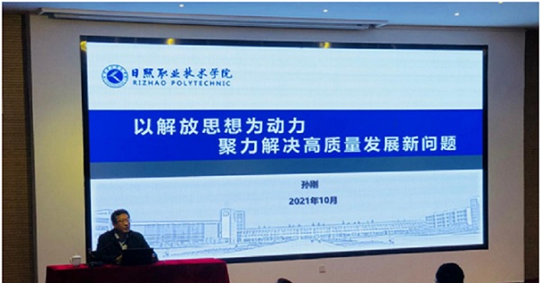 开展解放思想大讨论,就是要来一次思想的大提升、本领的大提升、作风的大提升,要切实做到“十个破除”、“十个着力”、“十个坚持”,以解放思想为动力,树立标准意识,用科学管理提高质量,用信息化提高效率。报告从三方面进行讲解:一是抓住机遇,充分认识当前面临的形势。党中央国务院对发展职业教育的高度重视,山东省整省推进部省共建高地行动迎来我校发展机遇叠加期,解放思想就是要抓住双高计划、提质培优、创新高地、省市共建、新校区建设和申办本科等重点工程建设。二是提升标准,深入厘清高质量发展问题。质量提升,标准先行,没有标准就没有质量,启发大家提升标准,深入厘清高质量发展问题,从国家层面,学校层面,专业层面,教师层面进行了剖析。三是解放思想,着力改进每一项工作任务。真正让干在实处、走在前列成为我们干部思想自觉、行动自觉,科学应变、主动求变、凝聚共识、