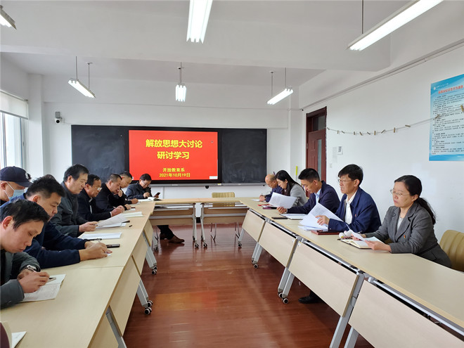10月19日下午,开放教育系在学术交流中心416室开展“解放思想大讨论”研讨学习活动,全体教职工参加。会议由党总支书记安佰峰主持。