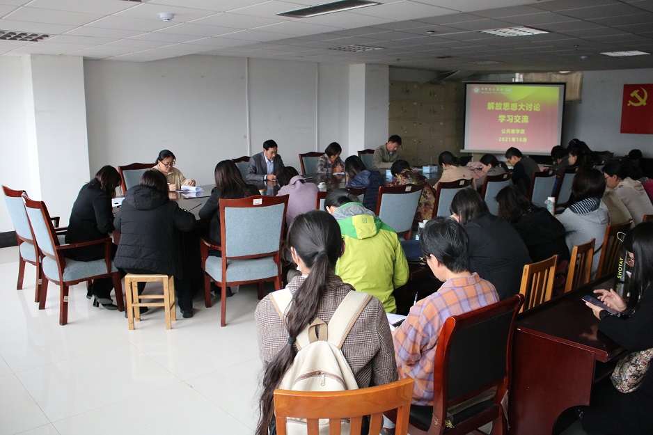 10月19日下午,公共教学部在天润楼501会议室开展解放思想大讨论学习交流活动。会议由副主任曹丽霞主持,全体教师参加会议。