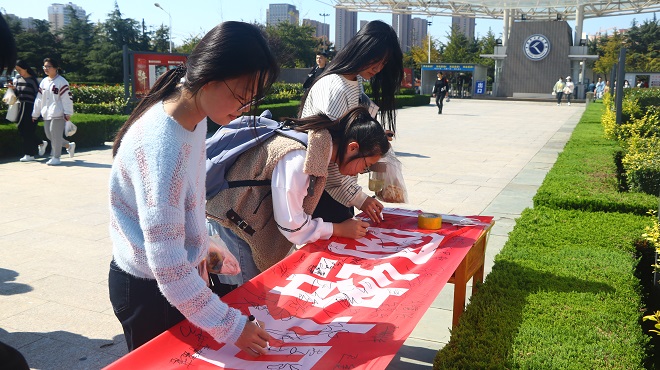 10月13日,机电工程系在卓越广场进行了横幅签字活动,了解学生对于网络安全方面的疑惑,回答学生疑问,与同学们面对面进行交流,增强学生对网络安全工作的了解。同学们积极参与并在横幅上签下自己的名字,立志努力维护网络安全。