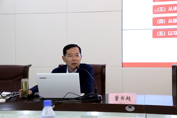 董书超首先从百年未有之大变局的世界方位谈起,倡导大家面对中华民族伟大复兴战略全局和世界百年未有之大变局,必须紧密地团结在以习近平同志为核心的党中央周围,把自己的事情办好,用自身发展的确定性对冲外部环境的不确定性,在统筹中华民族伟大复兴战略全局和世界百年未有之大变局中不断赢得新胜利;二是结合百年未有之职业教育的行业方位,简要回顾了我国职业教育的发展历程,全面解读了近年来职业教育领域新出台的政策法规,重点梳理了“双高校”计划、创新高地建设、提质培优工程、省市共建、现代职业教育高质量发展意见落实等方面的主要内容和重点任务,要求大家深入研究上级政策、认真学习钻研业务、及时了解国家战略、系统把握职业教育发展脉络,深入开展解放思想大讨论,进一步获得清晰的发展思路;三是立足百年未有之日职的学校方位,结合双高计划、提质培优、创新高地、省市共建、新校区建设和申办本科等六大机遇,全面分析了学校目前的优势和存在的劣势,强调了“十个破除”“十个着力”“十个坚持”等解放思想大讨论的重点内容任务,并结合个人近期的学习思考和面对面活动中大家提出的意见建议,聚焦“增强机遇意识、提振创业精神”,与大家交流了关于学校发展目标、发展思路措施等方面的心得体会。最后,他要求大家要做“拾柴者”,心往一处想,劲往一处使,在学校党委的坚强领导下,群策群力,献计献策,全力以赴,攻坚克难,营造起干事创业的浓厚氛围,朝着既定目标奋勇前进;要做“螺丝钉”,找准定位,积极作为,做到“帮忙不添乱,增光不抹黑”,笃行致远,不负韶华,在学校发展历程中留下自己的光和热;要做“挑担工”,善于学习、勇于实践、敢于吃苦、乐于奉献,靠专业吃饭、靠师德立身,用宽肩膀担当、靠真本事干事,每天都能做一个最好的自己,做一个组织最需要的分子。
