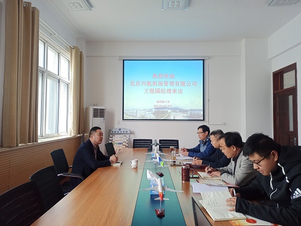 10月18日,北京兴航机场管理有限公司经理王煜国到校交流洽谈。通用航空系党总支书记牟盛勇,党总支副书记费涛,副主任孟凡收及部分教师参加洽谈。