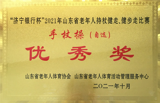 近日,从“济宁银行杯”2021年山东省老年人持杖健走、健步走比赛上传来喜讯,我校持杖操队伍代表日照市参加比赛,荣获佳绩。