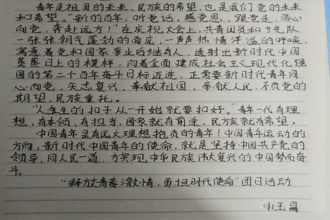 一百年前,一群新青年高举马克思主义思想火炬,在风雨如晦的中国苦苦探寻民族复兴的前途。一百年来,在中国共产党的旗帜下,一代代中国青年把青春奋斗融入党和人民事业,成为实现中华民族伟大复兴的先锋力量。电子信息工程系各班级团支部结合《习近平的七年知青岁月》《习近平与大学生朋友们》等书籍,解读习近平总书记在知青插队、为民办实事等经历中的心路历程和精神锤炼,开展了形式多样的团日活动,有的班级利用班团会讲述习近平知青插队的故事,有的班级学习《习近平与大学生朋友们》,组织写感悟、做摘抄等。活动过后同学们纷纷表示新时代的中国青年要以实现中华民族伟大复兴为己任,增强做中国人的志气、骨气、底气,不负时代,不负韶华,不负党和人民的殷切期望。