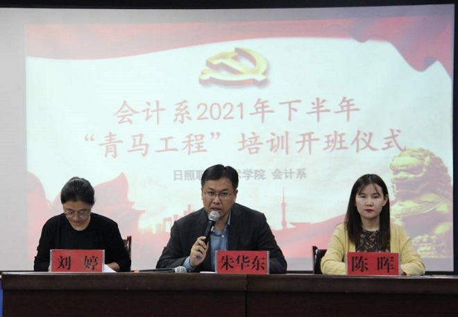在开班仪式上,辅导员陈晖首先宣读了《会计系2021年下半年青马训实施方案》,明确此次培训安排,希望学员们通过此次青马工程培训班的学习,使自己成为高度信仰马克思主义的大学生骨干。随后,党总支副书记朱华东做动员讲话,他讲到,开展此次青马工程培训的目的就是要在人生目标、奋斗理想、价值取向等方面对学员们进行科学的价值取向的引导。并介绍了青马工程培训切实的教育意义,表达对于学员们的殷切期望。他用自己独特、深刻的见解给学员们上了精彩的一课,会场里不断响起热烈的掌声。