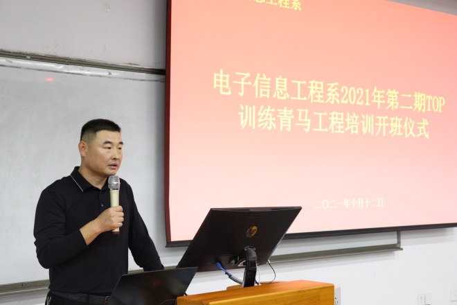 为提高学生干部政治素质、自主化管理、规范化建设的能力,提升其工作能力和综合素质,电子信息工程系于10月12日晚在地滋楼A115开展2021年第二期TOP训练青马工程培训开班仪式,电子信息工程系党总支副书记田锋,团总支教师张西杨、电子信息工程系第二十二届学生会主席团、2020级副部长及2021级学生会专项志愿者参加此次开班仪式。
