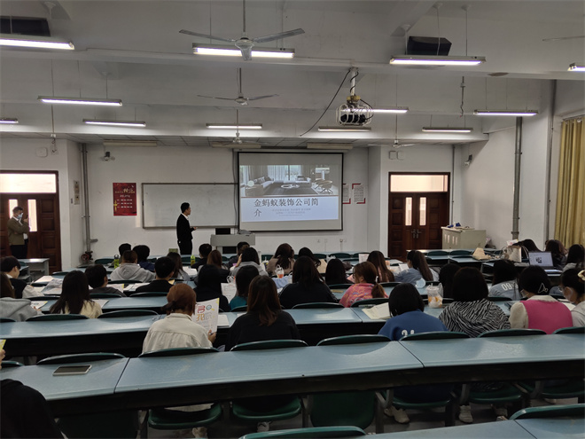 10月13日上午,在地滋楼B103,创意设计系为日照金蚂蚁装饰设计工程有限公司举行了一场针对环境艺术设计专业学生的校园专场招聘宣讲会。