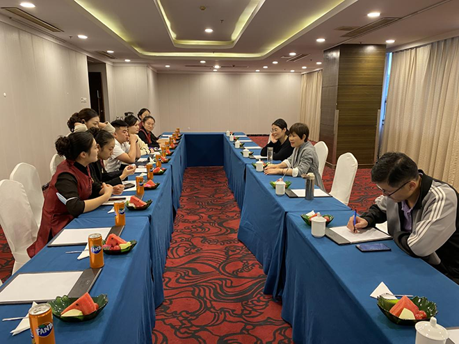 10月7日,系党总支书记李侠,酒店与数字化运营教研室教师宁双、胡秀丽一行,到日照蓝海钧华大饭店看望实习学生,并与学生进行座谈。座谈会上,李侠表达了对学生的关注、关心和关怀,并通过自己早些年在酒店行业的亲身经历,教育同学们要端正实习态度、正确认识学校环境和工作环境的不同,希望同学们能够在工作中发扬不怕苦不怕累的精神,爱岗爱企,能够在自己的工作岗位上有所成就。座谈会上,同学们也分享了自己实习以来的体会,提出了在酒店实习过程中遇到的一些生活、工作上的问题,老师们一一做了记录,并对学生集中提出的问题做出了解答。