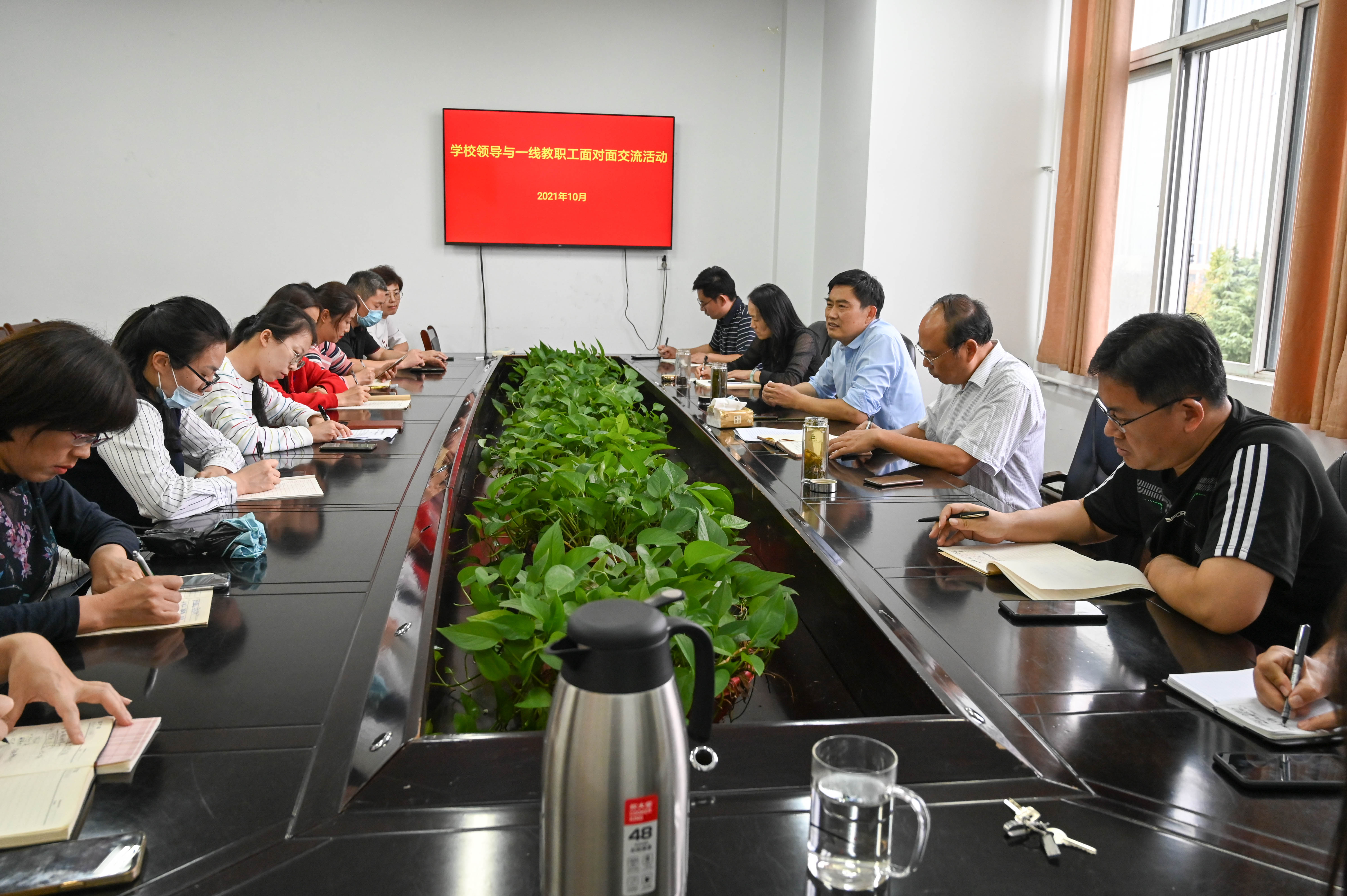 报告会后,邵长胜与会计系、商学系部分一线教职工进行了面对面交流,对学校当前重点工作、学校下一步的发展建议及学校后勤、财务、安全保卫等方面的工作听取教职工的建议与意见。邵长胜认真听取大家的发言,围绕大家集中关心的职称制度改革、专业建设、实训室设备、办公环境、技能大赛、校园安全、校园内学生宿舍管理、家属区卫生及电梯安装等问题进行了交流和探讨。邵长胜向与会教师对学校建设发展提出的宝贵的意见和建议表示感谢,并希望大家都来关心学校、关心学校发展、关心学校发展中的管理问题,集思广益,推动学校办学水平提升。(商学系