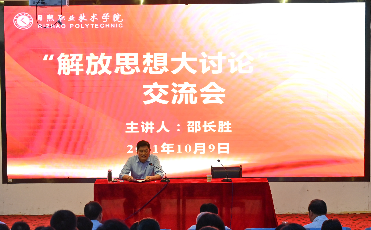 10月9日下午,学校党委委员、副院长邵长胜在地滋楼A区二楼报告厅作“解放思想大讨论”专题报告,总务处、财务处、保卫处、天润公司、会计系及商学系全体人员参加会议,商学系党总支书记牟宗国主持会议。