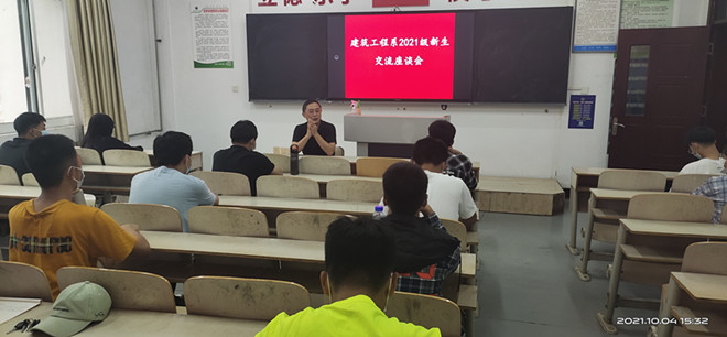 为切实做好新生安全教育工作,创建平安校园,提高2021级新生安全意识以及安全防范综合能力,建筑工程系于10月4日下午在海润楼N107开展了2021级新生交流座谈会,会议由建筑工程系党总支副书记乔梓主持。