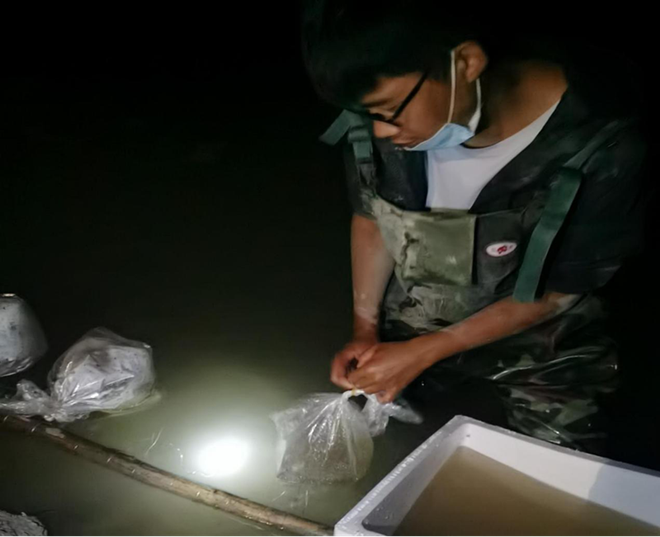 夜间水下放苗