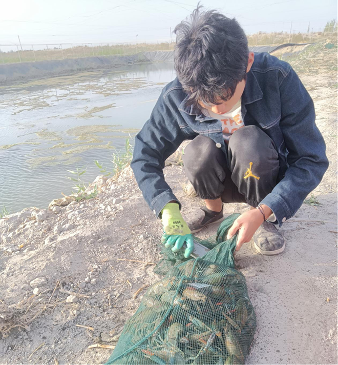 鉴于新疆贫乏水源,协调农业用水和养殖基地池塘日常补水,需要定期调整补水时间和补水量,也无形中增加了基地日常维护难度。三位同学积极与当地农户和农业公司,协商调配水量,保证了养殖过程中水源短缺的问题。