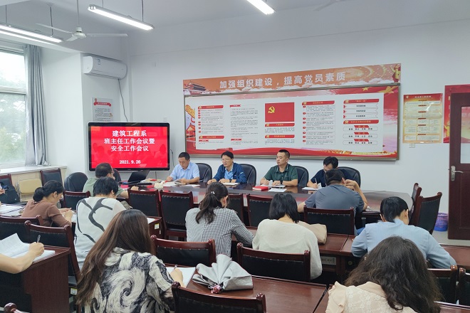为进一步抓紧抓实抓细我系校园安全各项工作,全面压实安全责任,筑牢安全防线,确保校园安全、师生健康,9月26日下午,建筑工程系在海润楼N211召开了全体班主任会议暨安全工作会议,会议由党总支副书记乔梓主持,建筑工程系领导班子成员、全体班主任参加会议。