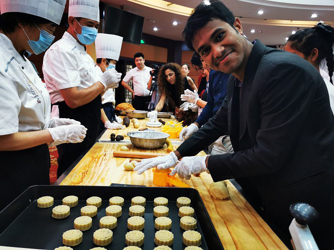 中秋节以月之圆兆人之团圆,不仅承载着浓浓的故乡情,也体现着中华民族历史悠久的传统文化。为感受中国传统文化魅力,丰富留学生校园生活,9月17日,我校来自巴基斯坦、孟加拉国、柬埔寨等国家的11名外教、留学生应日照市人民政府外事办公室邀请,参加了日照外籍友人中秋节包月饼民俗体验活动。