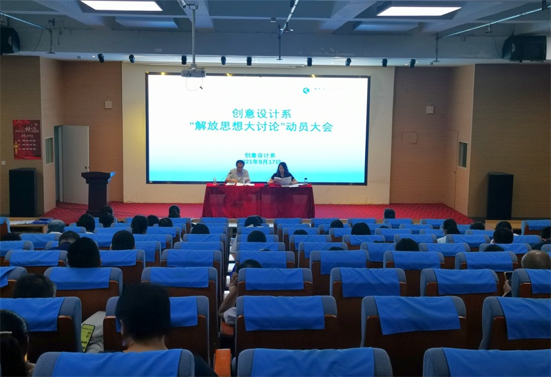 9月17日下午,创意设计系在地滋楼A区二楼报告厅召开了“解放思想大讨论”动员大会。系主任张永宾主持会议并作动员讲话,全系教师参加了会议。