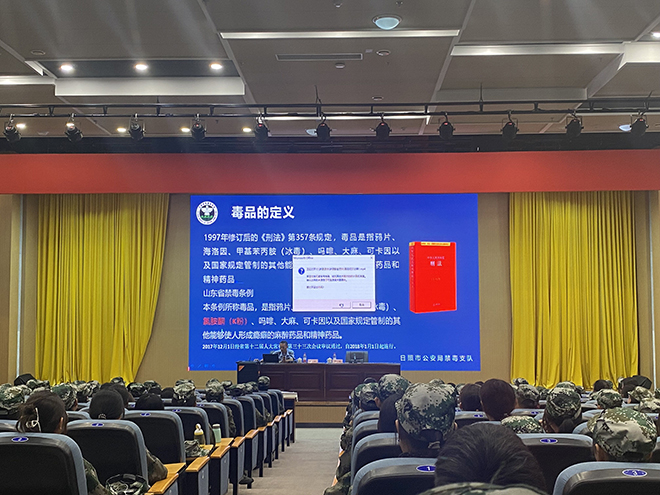 丁健从警二十余年来,始终战斗在基层一线,荣获过个人一等功、山东省优秀共产党员、山东青年五四奖章、山东省优秀青年卫士等二十余项市级以上荣誉,是我市公安战线上的优秀模范代表。他在讲座中详细介绍了我们当前的禁毒形势、毒品种类以及毒品危害等三个方面知识,并教育引导学生如何鉴别毒品、毒具,远离毒品,远离危险人群、危险环境,提高识毒拒毒能力,远离毒品侵害。讲座结合禁毒视频和真实案例为学生上了生动了一堂安全教育课,让学生真真切切感受到了毒品珍爱生命、远离毒品的重要性。