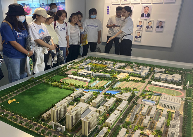 9月11日下午,日职导游工作室丁乐、谢凡、李景等八名校园导游,带领旅游管理专业2021级新生参观了校园,参观路线为:校史展馆—教师发展中心—图书馆—日初广场—格物楼一楼—卓越广场—和润楼。