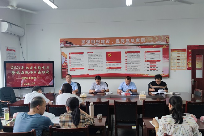 在第37个教师节来临之际,9月9日下午,建筑工程系在海润楼二楼党员活动室组织开展了九月份第一次主题党日暨欢庆教师节茶话会活动,活动由乔梓主持,全体教师参加。